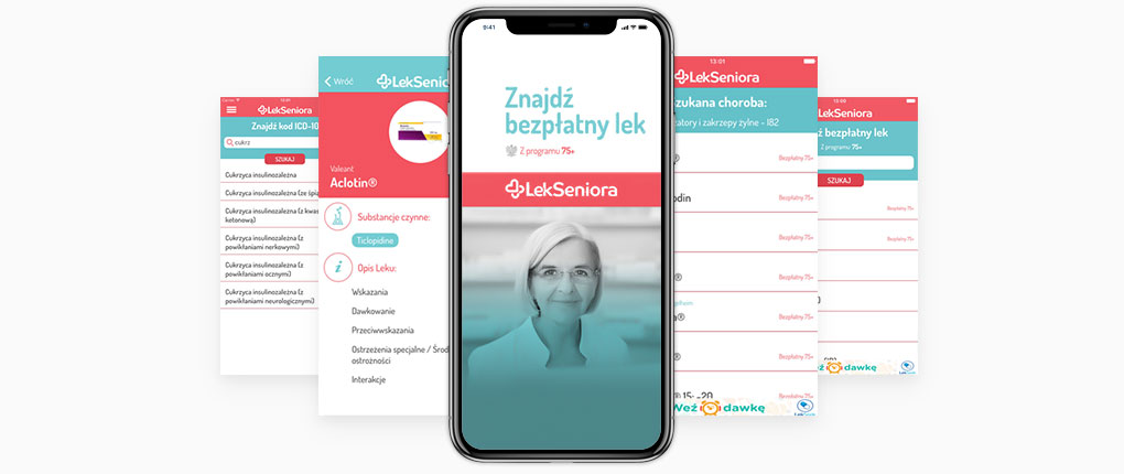 Aplikacja Lek Seniora umożliwia znalezienie informacji o bezpłatnych produktach leczniczych, objętych programem 75+. Adresowana jest do wszystkich zainteresowanych tym projektem, zarówno do pacjentów i ich opiekunów, jak i lekarzy oraz farmaceutów.