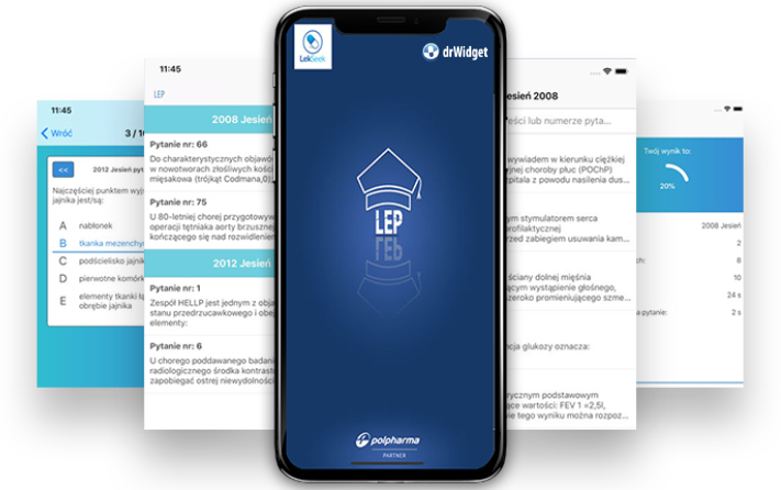 Korzystając z aplikacji mobilnej DrWidget LEP, w wygodny sposób można przygotować się do Lekarskiego Egzaminu Końcowego. Użytkownicy znajdą tutaj bazę testów egzaminacyjnych z lat 2008-2012. Wystarczy pobrać aplikację na telefon, aby móc uczyć się w dowolnym momencie.