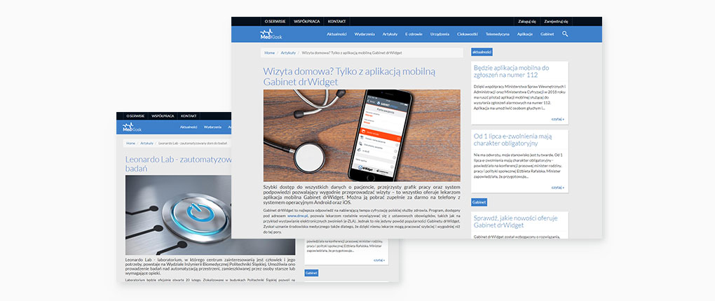 MedKiosk to serwis dla pasjonatów nowych technologii, informujący o innowacyjnych rozwiązaniach i ich wykorzystaniu w różnych dziedzinach medycyny – w Polsce i na świecie. Został podzielony na przejrzyste sekcje tematyczne, takie jak np. „Wydarzenia”, „E-zdrowie”, „Urządzenia”, „Ciekawostki” i „Aplikacje”. Możliwość komentowania artykułów umożliwia zarejestrowanym internautom prowadzenie ciekawych dyskusji. Serwis cieszy się zainteresowaniem lekarzy, personelu medycznego, farmaceutów i pacjentów – co miesiąc odnotowuje 1,3 mln odsłon.